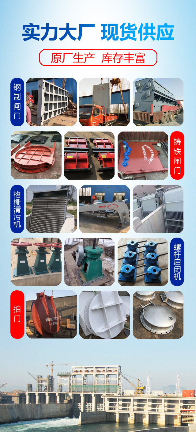 直升式平面滑動(dòng) 主要由閘框、閘板、吊座及緊閉斜鐵等零部件組成。為克服以往鋼門(mén)易銹蝕的缺點(diǎn),閘框、閘板全采用鑄鐵組成,其中閘框又由上橫梁、下橫梁、左直梁、右直梁組成。為了制造、運(yùn)輸、安裝方便,閘板一般根據(jù)其大小或高度情況由上下幾部分拼裝組成。 閘門(mén)按閘板形狀的不同,分為PZ平板和PGZ拱形兩大類(lèi)。具體選用可根據(jù)閘孔尺寸、承壓水頭、啟閉型式、閘門(mén)自重等方面加以綜合比較確定。